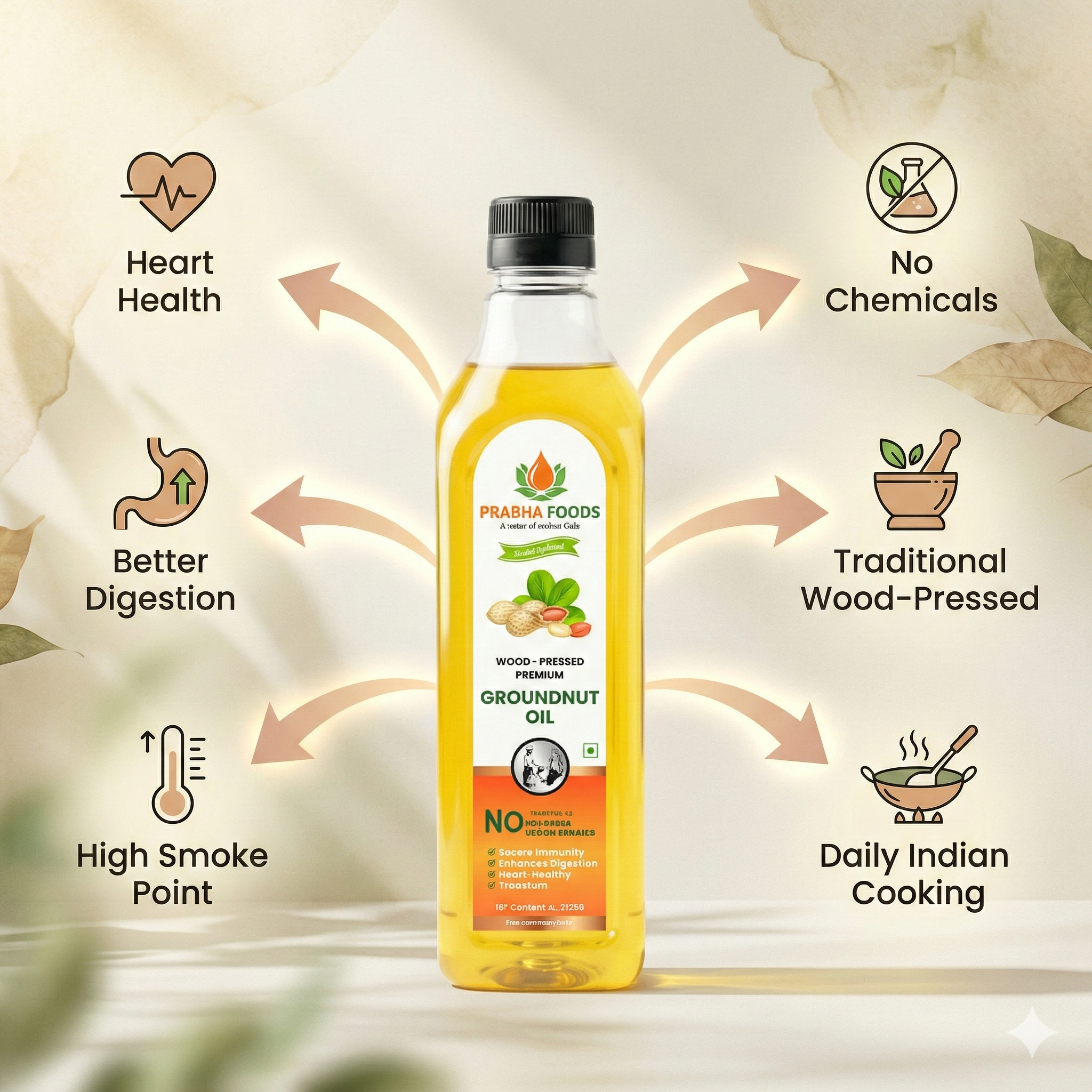 Pure, wood-pressed groundnut oil that delivers balanced flavor, stability at high heat, and wholesome nutrition for your family’s daily meals.